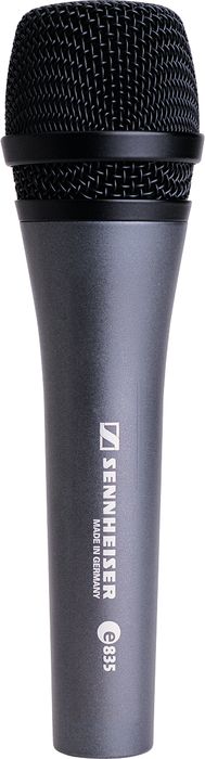 The Sennheiser e835 Dynamic Vocal Microphone; A top selling mic for lead vocals. The e835 is a quality vocal mic with performance and build characteristics never before available at this price. The e835 from SennheiserA utilizes a cardioid pick-up pattern providing good signal isolation and feedback rejection, enabling higher sound levels to be obtained. Metal construction and internal shock-mount system minimizes handling noise. Designed as a lead vocal stage mic, the Sennheiser e853 performs under pressure. Available here in two separate packages: One e835 with a tripod boom stand. - or - A 3 microphone package that offers three e835s with great savings. Uniform frequency pick-up pattern maintains signal quality when moving on and off axis during performance. Gentle presence boost to even tonal response on the e835 ensures clarity and projection. Minimal proximity effect provides consistently clear bass end performance when singing closer to or further from microphone capsule. Click To More information.
